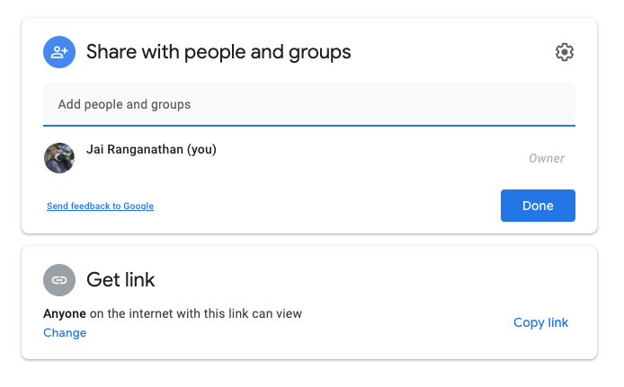 One thing of note about this figure is that the constituent data comes from a live Google Sheet. You can see this Google Sheet being called in line 22 of modal_google_charts.html. What allows this to work is that, in the sharing options for the Sheet, the “Get link” option is set to “Anyone on the internet can view” (see image below). The sharing options can be accessed by hitting the green Share button in the upper right of the Google Sheet.