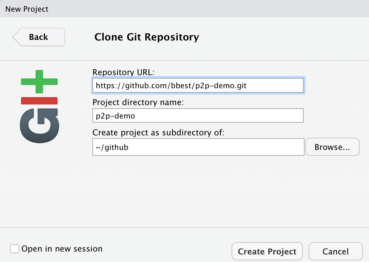 Next, you will clone the repository onto your local machine using RStudio. I recommend creating it in a folder github under your user or Documents folder.